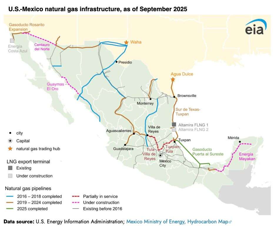 Mexico is building LNG export terminals. Projects like Fast LNG Altamira and Energía Costa Azul are moving forward, sourced primarily from… US pipeline imports.