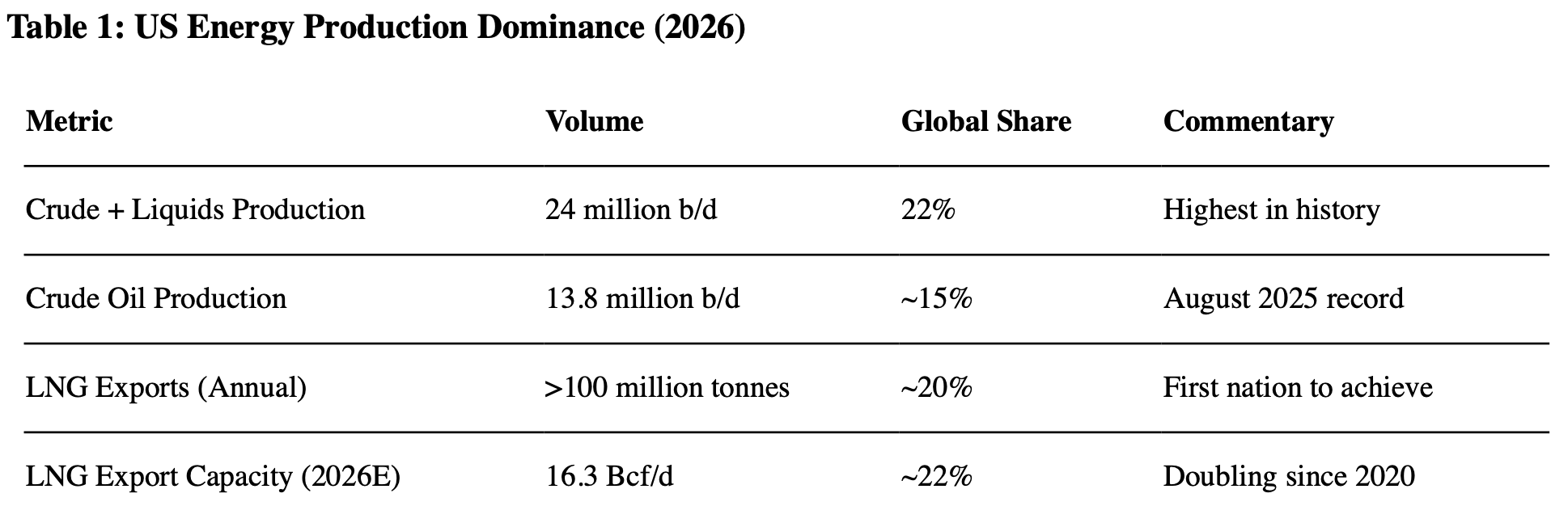 On the natural gas side, the US has crossed 100 million tonnes of annual LNG exports. No other nation has achieved this. By end of 2026, US LNG export capacity will reach 16.3 billion cubic feet per day.
